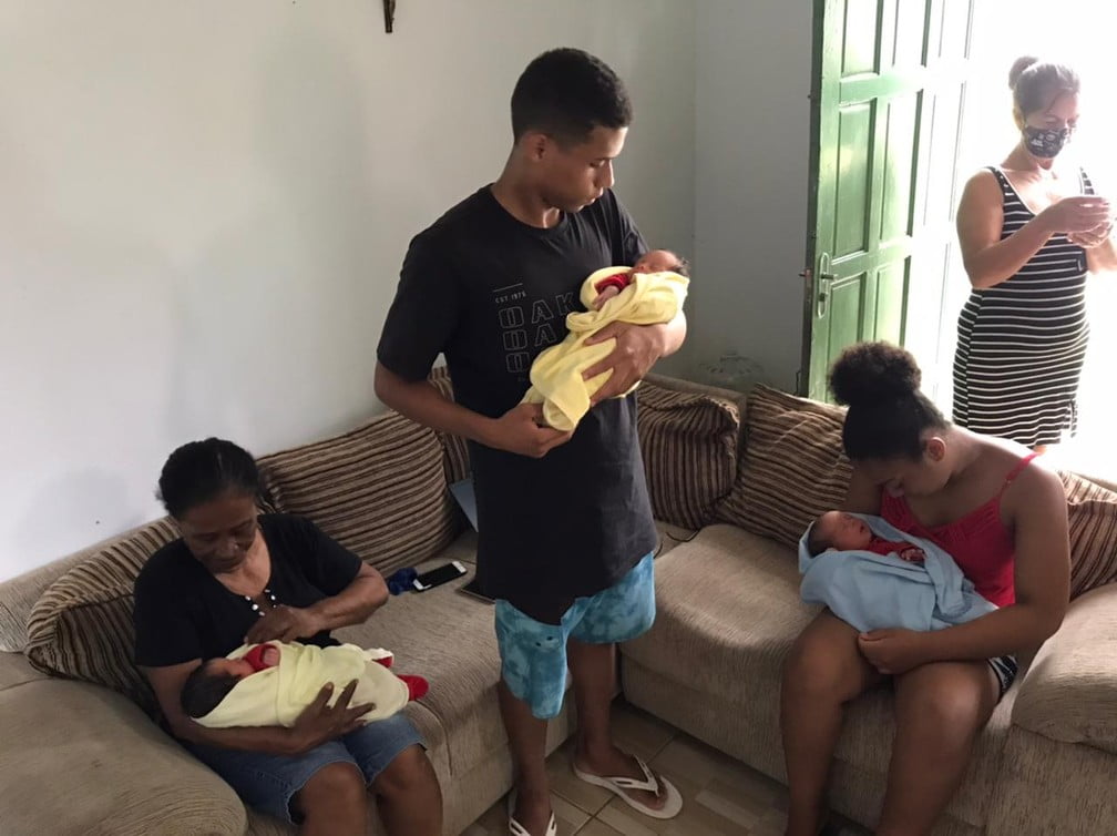 Vitória, Breno e Valentina nasceram na terça-feira (26) após um parto sem intercorrências. Eles estão saudáveis e chegaram por volta das 11h30 na residência de um tio, que fica na mesma rua em que vão morar junto com pai e as irmãs.