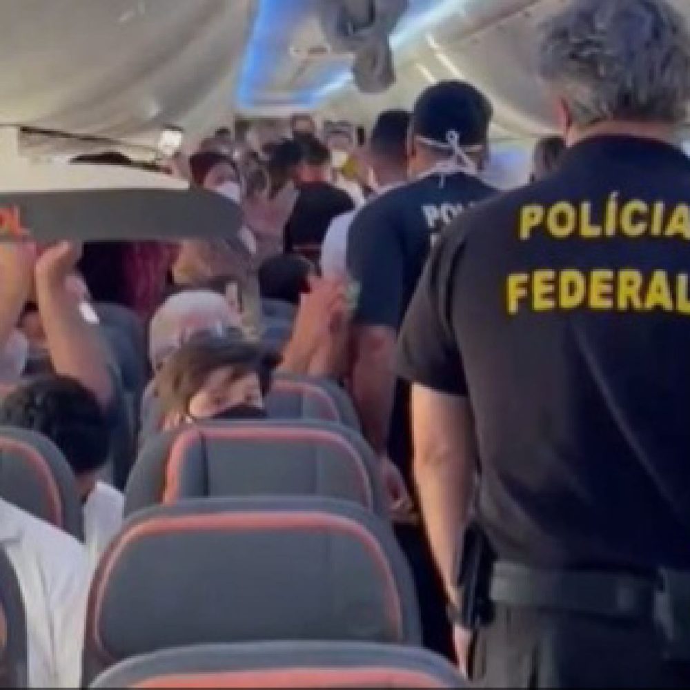 “A Polícia Federal chegou e ia só conduzir ele, mas na hora que pararam, ele deu um solavanco nos policiais, e aí ele tomou voz de prisão por desacato, falou o médico. A PF confirmou que, a pedido do comandante da aeronave, agentes da corporação retiraram o passageiro que se recusava a utilizar máscara. Fonte: G1