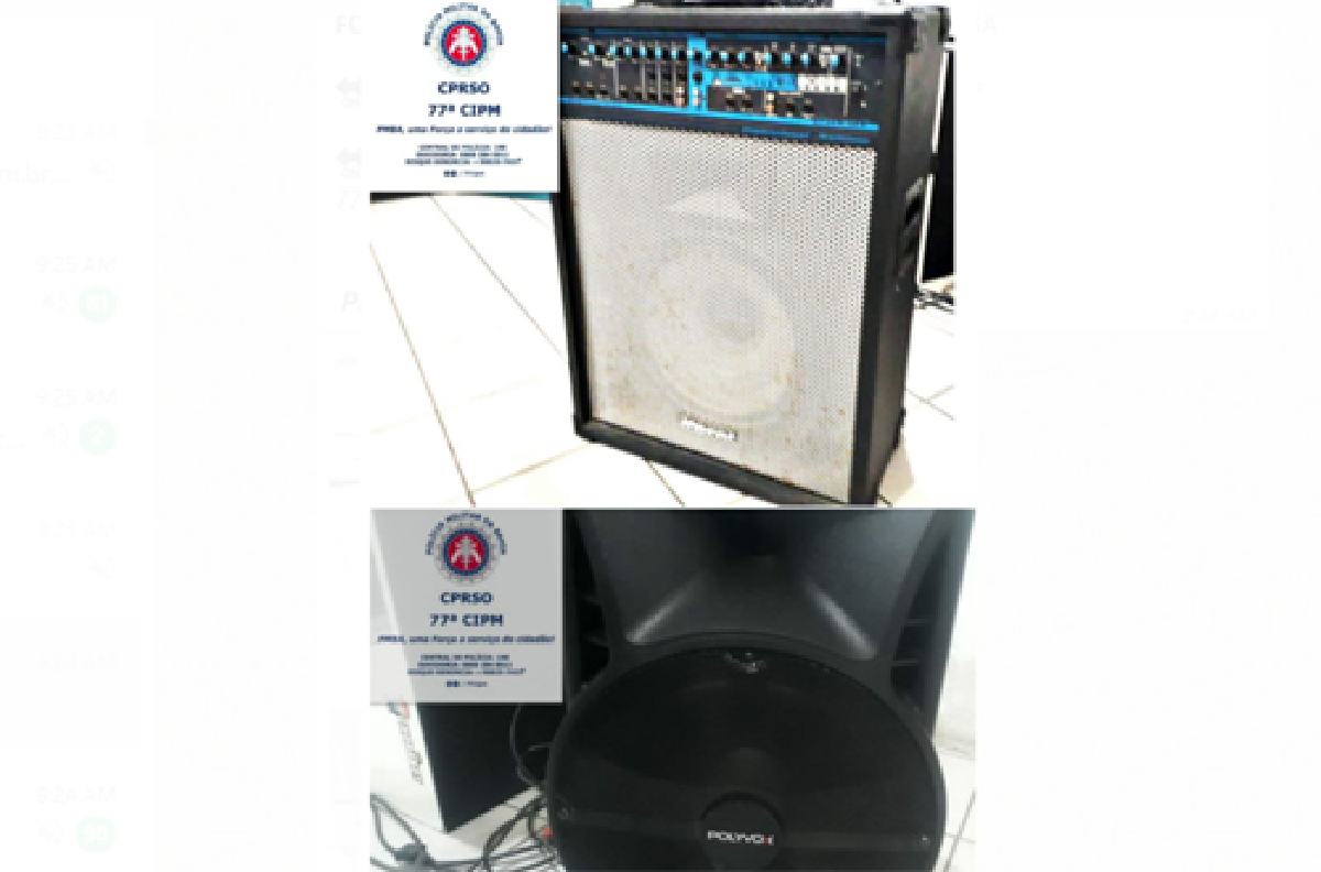 Duas caixas de som foram apreendidas durante a operação.