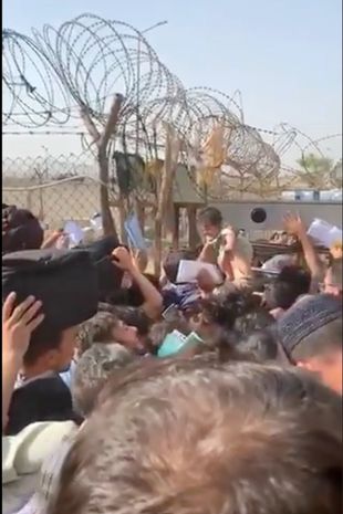 Vídeos amplamente compartilhados online mostraram afegãos desesperados tentando içar um bebê por cima de arame farpado em uma tentativa frenética de escapar do Taleban.