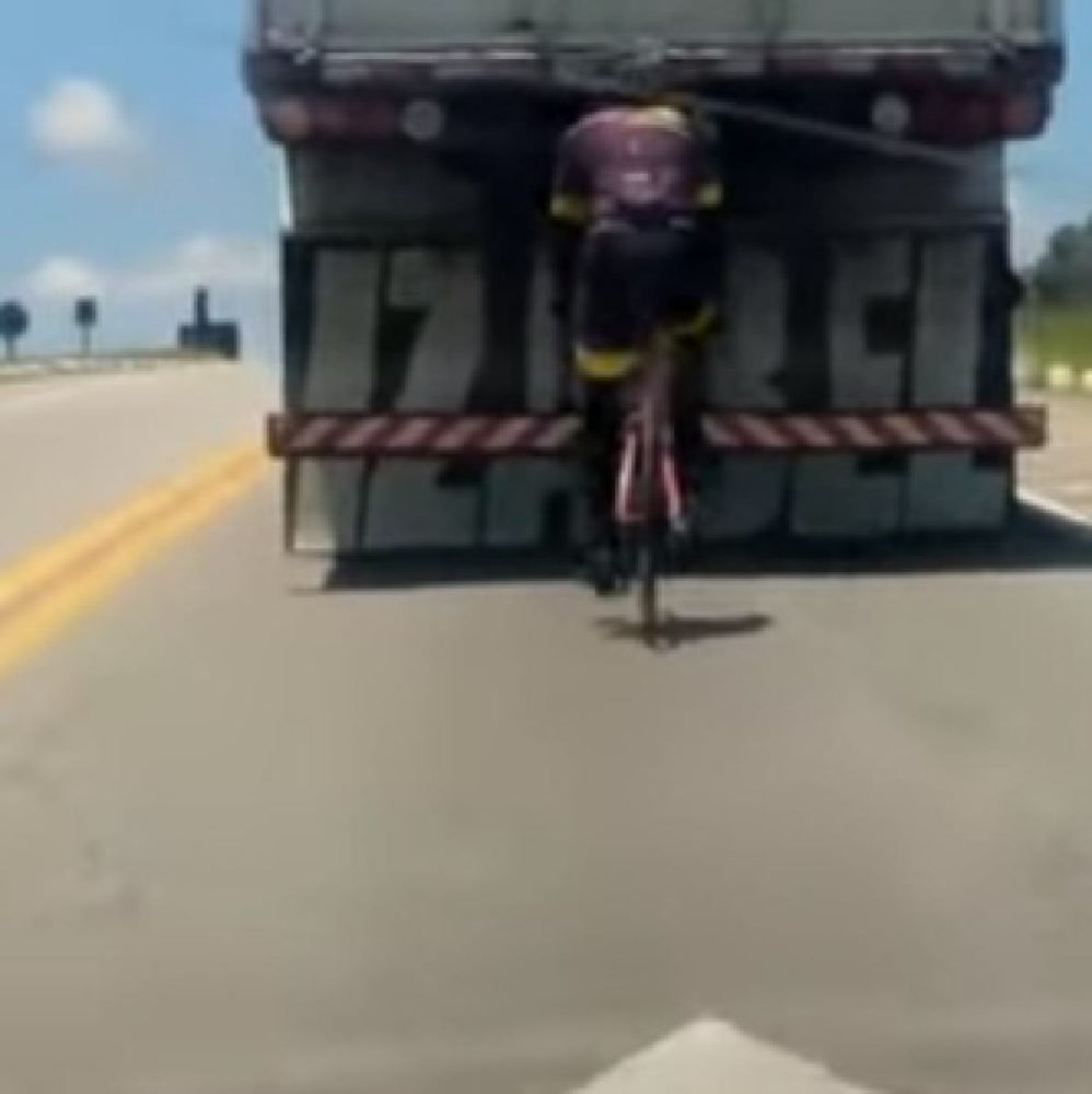 Um vídeo que circula na Internet mostra um ciclista se colocar em uma citação de alto risco ao pongar na traseira de um caminhão em movimento no anel rodoviário de Vitória da conquista na Bahia.