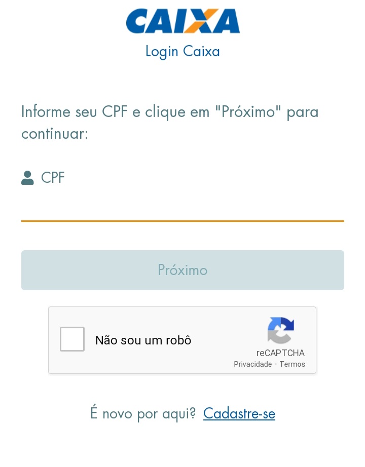 4. Digite seu CPF, se ainda não tiver conta clique em cadastre-se: