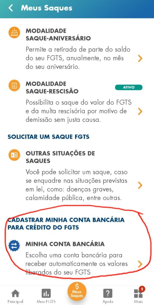 8. Quando aplicativo estiver aberto clique em meus saques na parte inferior