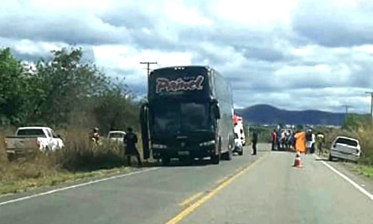 Motocicleta com três pessoas colide com ônibus de Banda em Tanhaçu na Bahia