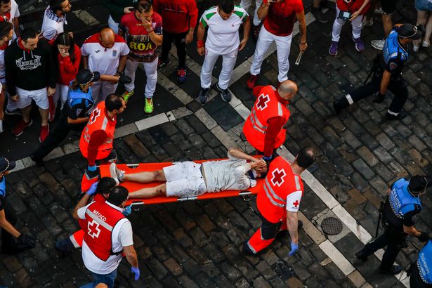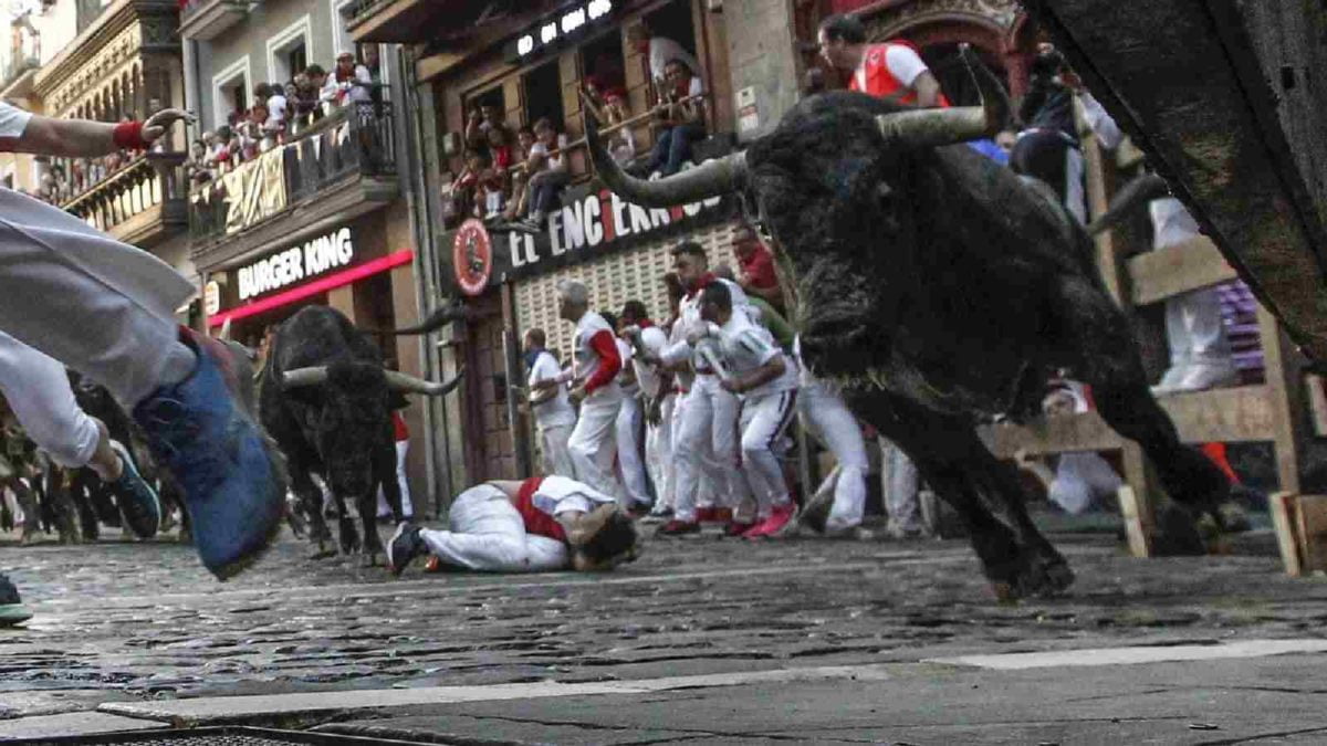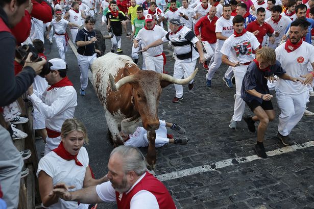 Vários corredores foram pisoteados ou atropelados pelos seis touros e os seis bois mansos que atravessaram as ruas estreitas e tortuosas do bairro antigo de Pamplona em dois minutos e meio.