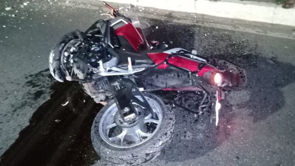 A batida da moto no poste foi tão violenta, que o poste chegou a ficar inclinado. O Departamento de Polícia Técnica foi acionado. A Polícia Militar também está no local.