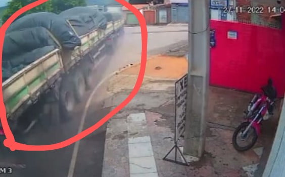 Imagem mostra a carreta segundo antes de invadir as casas ( Foto: Glob Mud)