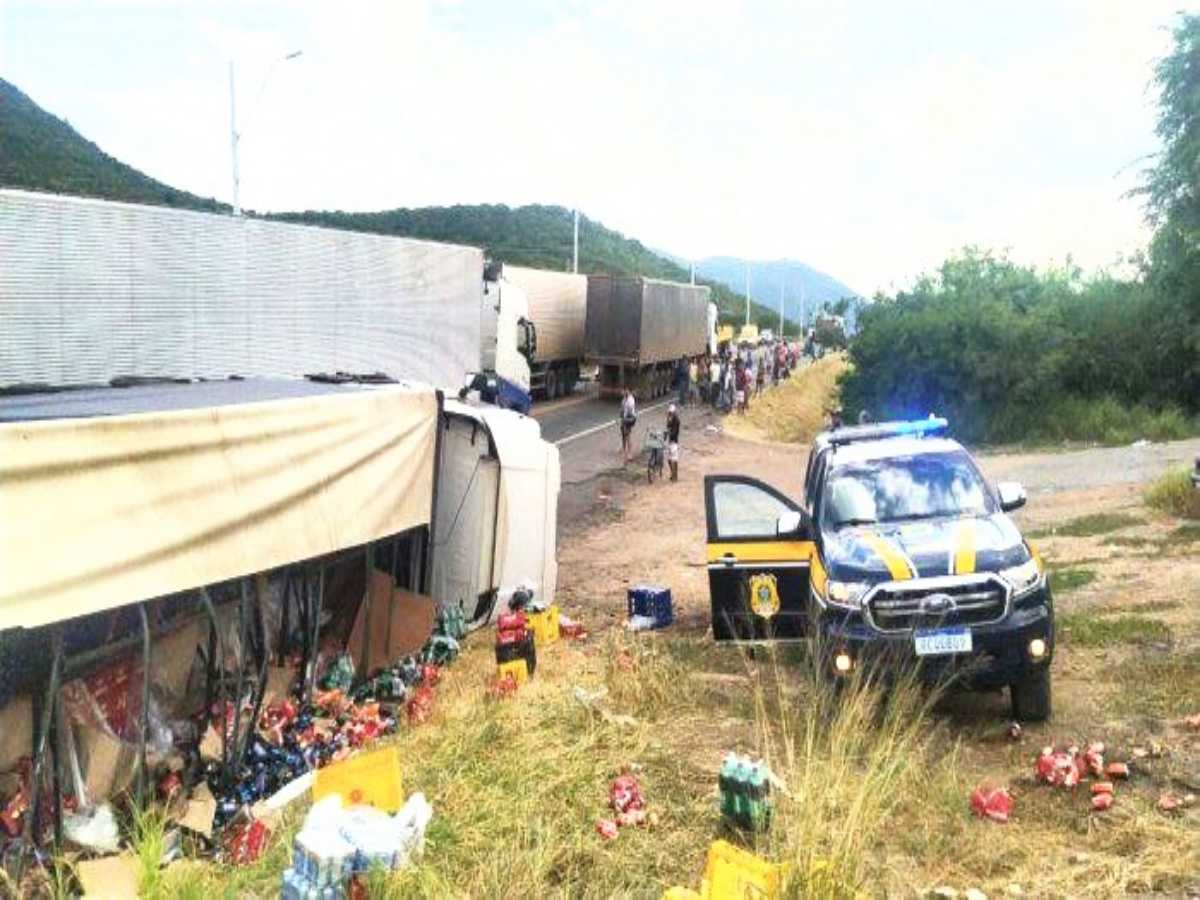 Bahia: Caminhão carregado com cerveja tomba e população leva toda carga