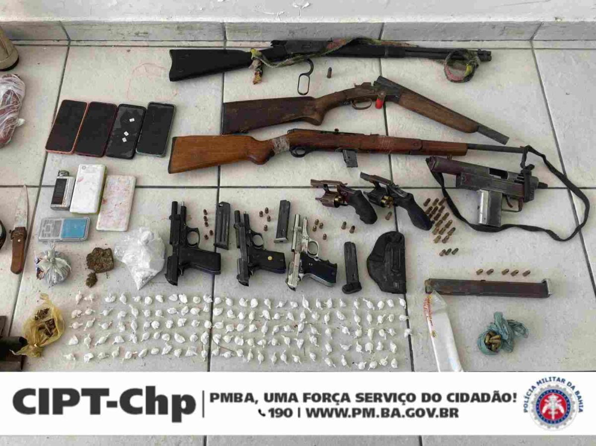 Além disso, foram apreendidos 284 gramas de cocaína, 133 papelotes de cocaína e 50 gramas de maconha. Todo o material confiscado foi encaminhado à 12ª Coordenadoria Regional de Polícia do Interior (Coorpin), em Itaberaba, onde a ocorrência foi registrada.