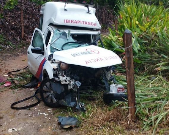 O acidente ocorreu quando o motorista da ambulância tentou fazer uma ultrapassagem irresponsável e bateu o veículo de frente com uma carreta.