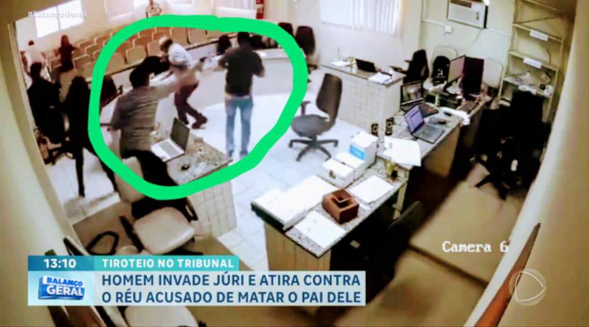 No vídeo é possível ver juiz, advogados e jurados em desespero buscando abrigo para se proteger dos disparos. Felizmente, nenhum deles foi atingido pelos tiros. VEJA O VÍDEO: