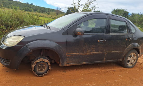 O carro de Luciele foi encontrado em uma estrada, danificado e com um dos pneus faltando.