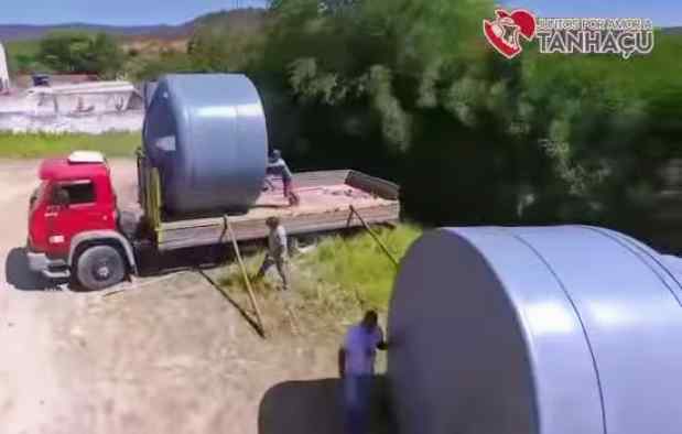Cisternas distribuídas por Valdemir Gondim para a população de Tanhaçu na Bahia ( Foto: Glob Mud )
