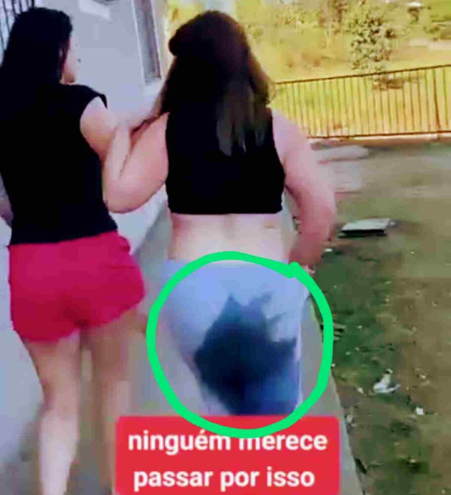 Durante o confronto, a situação se intensifica, e a vizinha, em um estado evidente de nervosismo, aparece com a calça molhada, sugerindo que ela estava extremamente assustada com a situação.