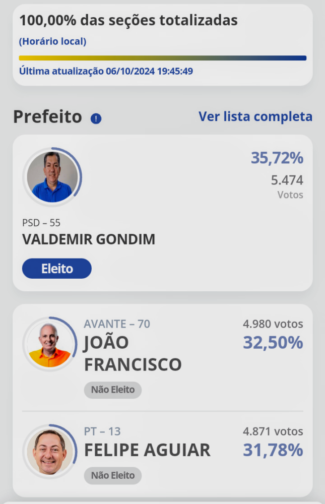 Valdemir gondim é eleito prefeito de Tanhaçu em 2024 .