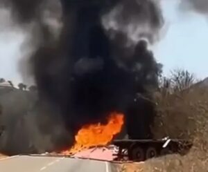 Um motorista que passava pelo local no momento do acidente gravou as chamas consumindo a carreta e relatou o susto que levou. “A carreta capotou na minha frente, escapou de bater em mim”, disse o condutor.