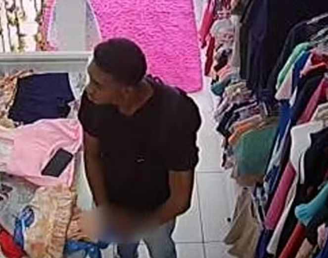 O fato ocorreu por volta das 8h30, quando Márcio entrou no estabelecimento alegando que desejava comprar roupas para duas crianças. Durante o atendimento, a vendedora notou que o suspeito aparentava estar nervoso. Enquanto mostrava algumas peças, a jovem sentiu um líquido pegajoso em suas costas e cabelo. VEJA O VÍDEO :