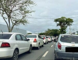 O acidente ocorreu em um trecho de grande movimento, causando um congestionamento significativo na região. Até as 9h45min, os dois veículos ainda estavam no local, dificultando o fluxo de trânsito na rodovia.