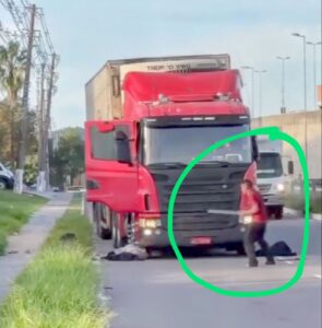 Em seguida, o caminhoneiro é visto gesticulando freneticamente, golpeando o ar com um objeto não identificado, como se estivesse lutando contra uma presença invisível. A aparente luta contra um inimigo imaginário deixou testemunhas assustadas.