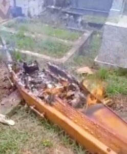 Em seguida, os criminosos incendiaram a urna funerária, provocando correria e desespero entre familiares, amigos e demais presentes.