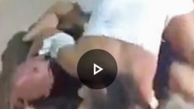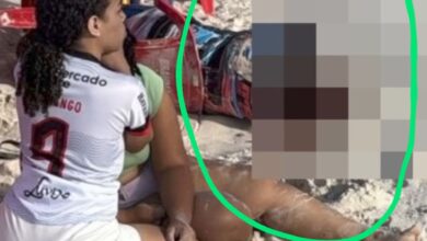 Vídeo mostra homem derrubando mulher com um murro no rosto na frente de uma criança