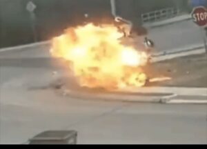 Vídeo de câmera de segurança mostra momento exato da explosão que quase atinge crianças em rua residencial no Texas.
