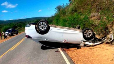 Carro cai em ribanceira entre Tanhaçu e Ituaçu ao tentar desviar de motorista imprudente que fazia ultrapassagem forçada em local proibido