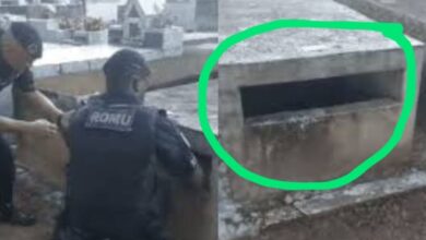 Vídeo: Homem tenta escapar da polícia se escondendo em túmulo