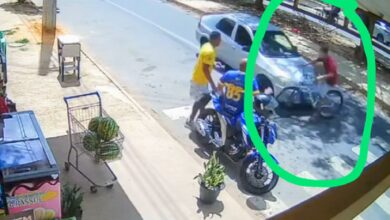 Vídeo mostra homem derrubando mulher com um murro no rosto na frente de uma criança