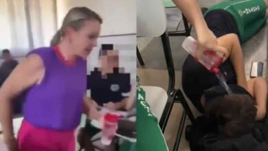 Polêmica: Vídeo mostra professora jogando água em aluno que dormiu durante a aula