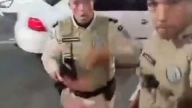 Policial militar agride manifestante durante protesto por justiça a Caíque dos Santos em Salvador