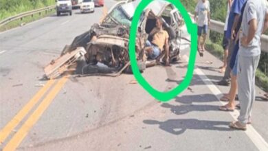 Bahia: Carro fica destruído ao tentar ultrapassar um caminhão, motorista ficou em estado grave de saúde