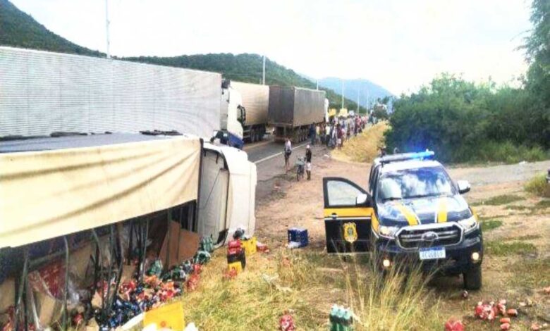 Bahia: Caminhão carregado com cerveja tomba e população leva toda carga